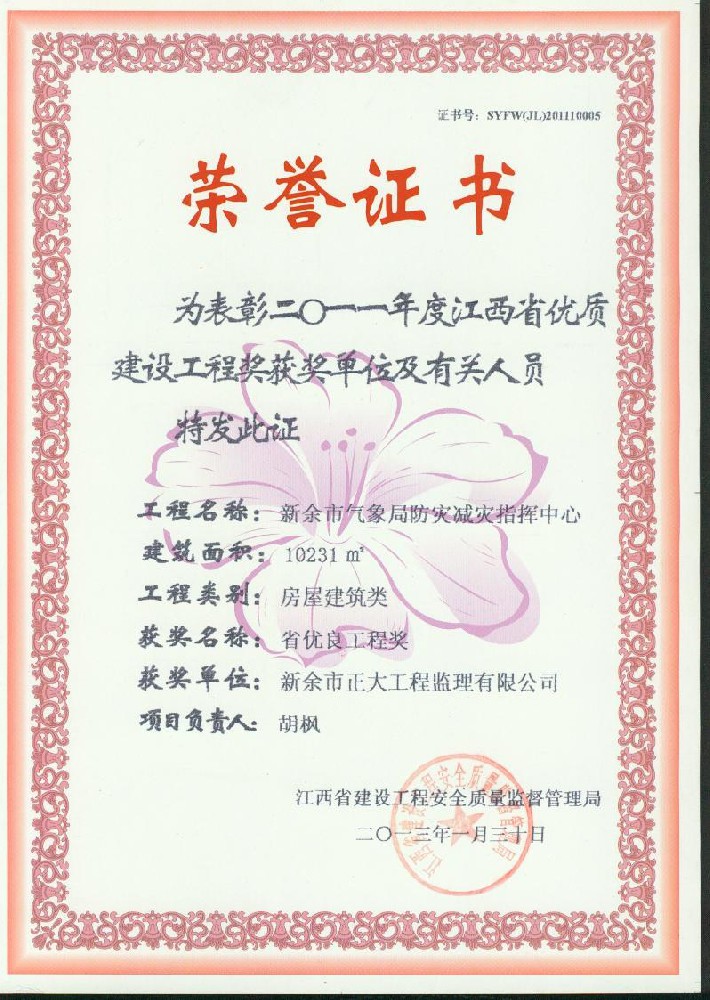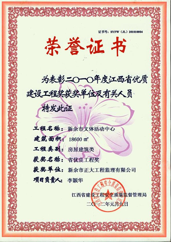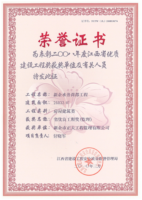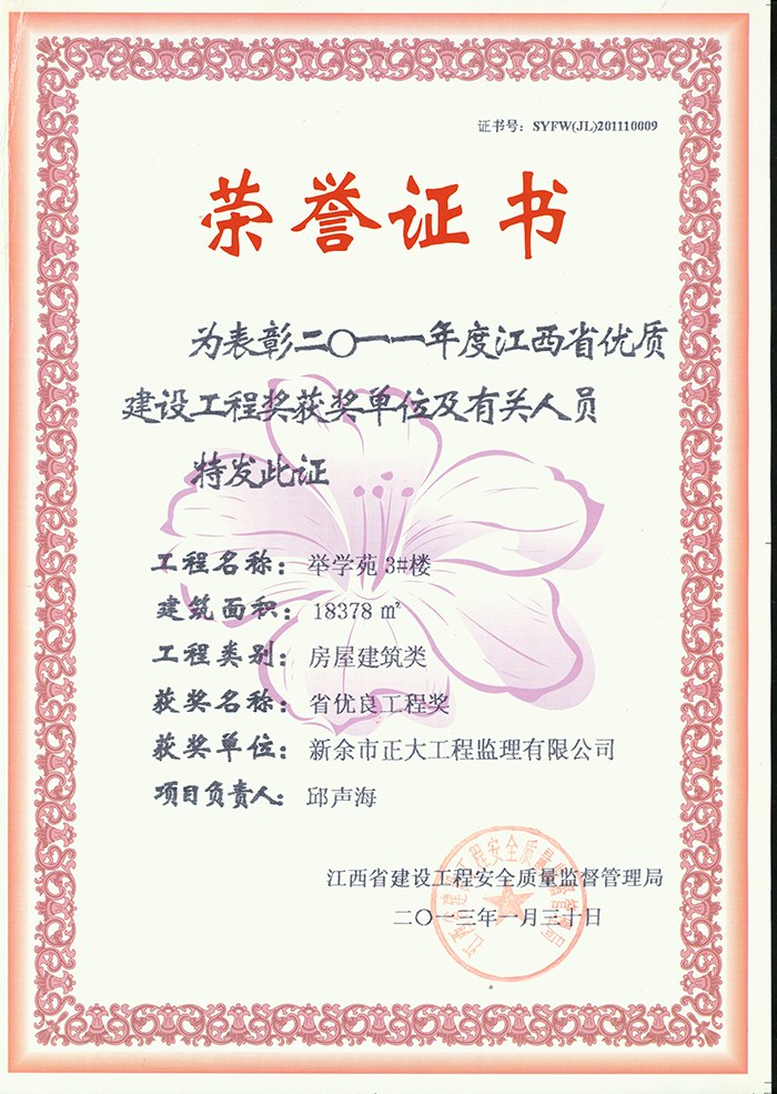 新余市正大工程監(jiān)理有限公司依托新余市建筑設(shè)計(jì)院,于1995年11月成立,是新余市開(kāi)展監(jiān)理工作最早的監(jiān)理單位,本公司具有建設(shè)部核發(fā)的房屋建筑工程甲級(jí)監(jiān)理資質(zhì)、市政公用工程乙級(jí)監(jiān)理資質(zhì)、國(guó)家人防辦核發(fā)的人防工程監(jiān)理乙級(jí)資質(zhì)。我公司始終堅(jiān)持“客戶至上、質(zhì)量第一、信守合同”的經(jīng)營(yíng)理念;追求“為社會(huì)創(chuàng)造價(jià)值、為業(yè)主創(chuàng)造效益、為自身謀求發(fā)展”的經(jīng)營(yíng)宗旨;遵循“守法、誠(chéng)信、公正、科學(xué)、優(yōu)質(zhì)、高效”的工作原則,以雄厚的技術(shù)力量、完善的管理制度、豐富的監(jiān)理經(jīng)驗(yàn)、良好的企業(yè)信譽(yù)迅速成為我市監(jiān)理行業(yè)的一支新銳力量! 查看更多>>
